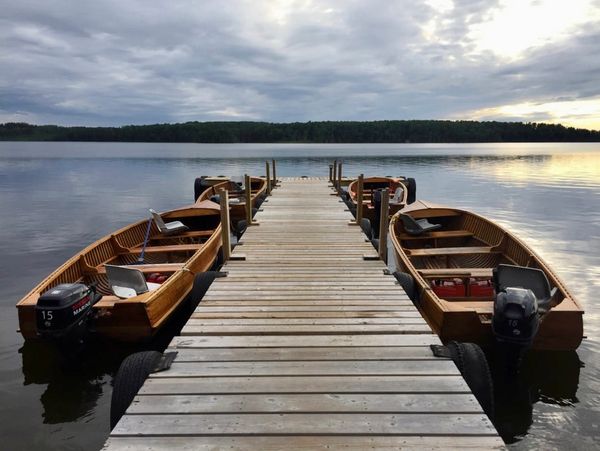Easily accessible from Meta Lake is Ara Lake, an exceptional quality summer Walleye, Perch and trophy Northern Pike fishery in its own right. A classic rocky shield lake, Ara Lake is a mecca for jig fishermen and those who prefer to troll. All packages include one of our modern 16' aluminum or beautiful 18' cedar strip wooden boats (depending on availability) per 2 or 3 guests outfitted with electric start 15hp 4-stroke motors, high back swivel seats and seat cushions, landing net, anchor, live bait bucket safety kit and paddle. There is also a 12v battery for any personal electronics. Fish finders are available for rent for guests who don't have their own portable unit.